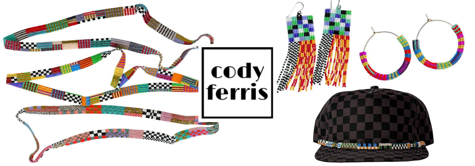 Cody Ferris is handcrafted jewelry and decor created by experiments with color, shape, and texture. Jewelry to get you noticed but wearable enough for everyday made from beads, brass and acrylic. All items are hand sawed, sewn, and finished, embracing the imperfections. Collections are designed with intention to waste as little as possible and often creating one of a kind pieces.