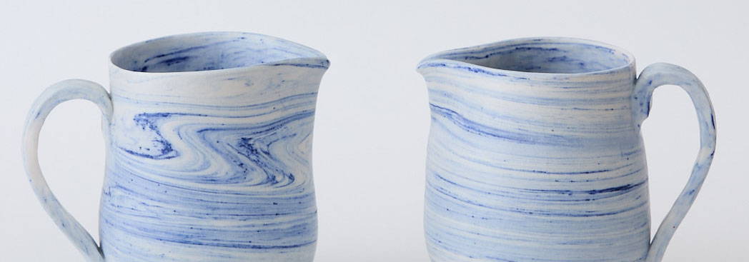 Hi! My name is Jessica and I make porcelain pottery here in San Francisco. Many of my pieces are functional and intended for daily use. I often add a colorant to the white clay to create swirls, marbled patterns, and other unique markings. I like to use a matte clear glaze so the surface of the clay is visible, and the finished pieces retain a stone-like natural feel.