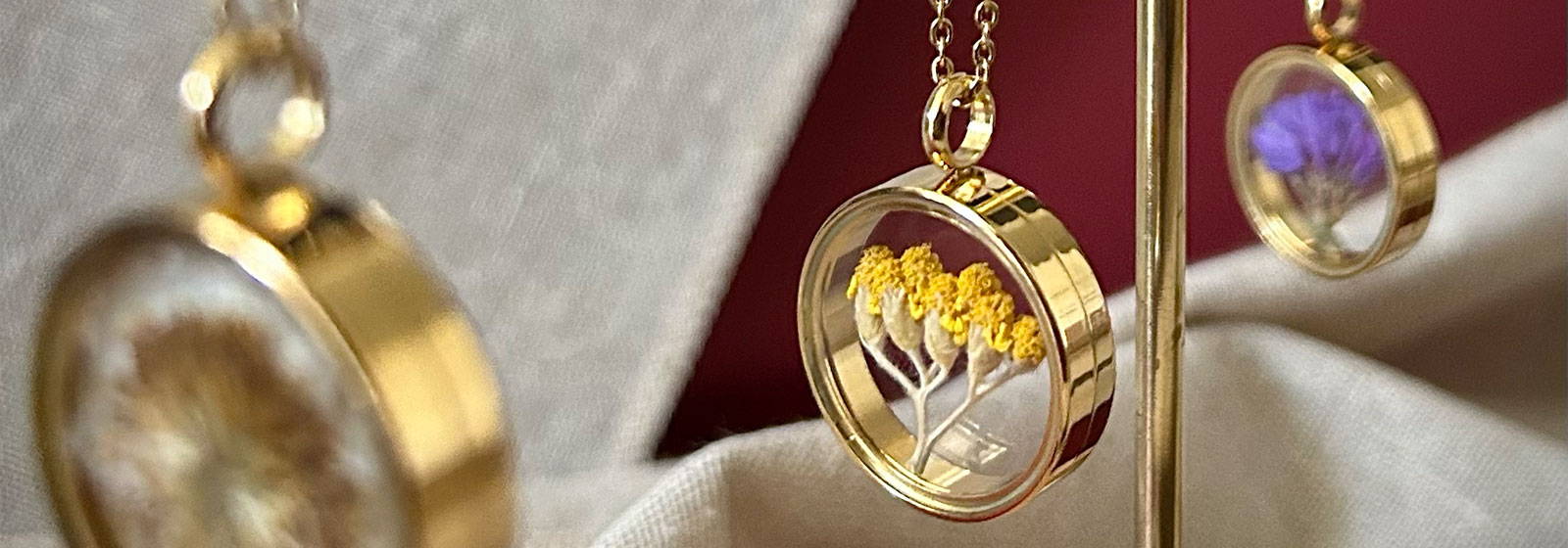 Lisa D’Acquisto is the maker behind CuAgMire Jewelry and her pieces reflect a background in botany and a love of color. Her creations are born in her home studio in the Inner Sunset of San Francisco and her hometown space in Nevada City, CA.